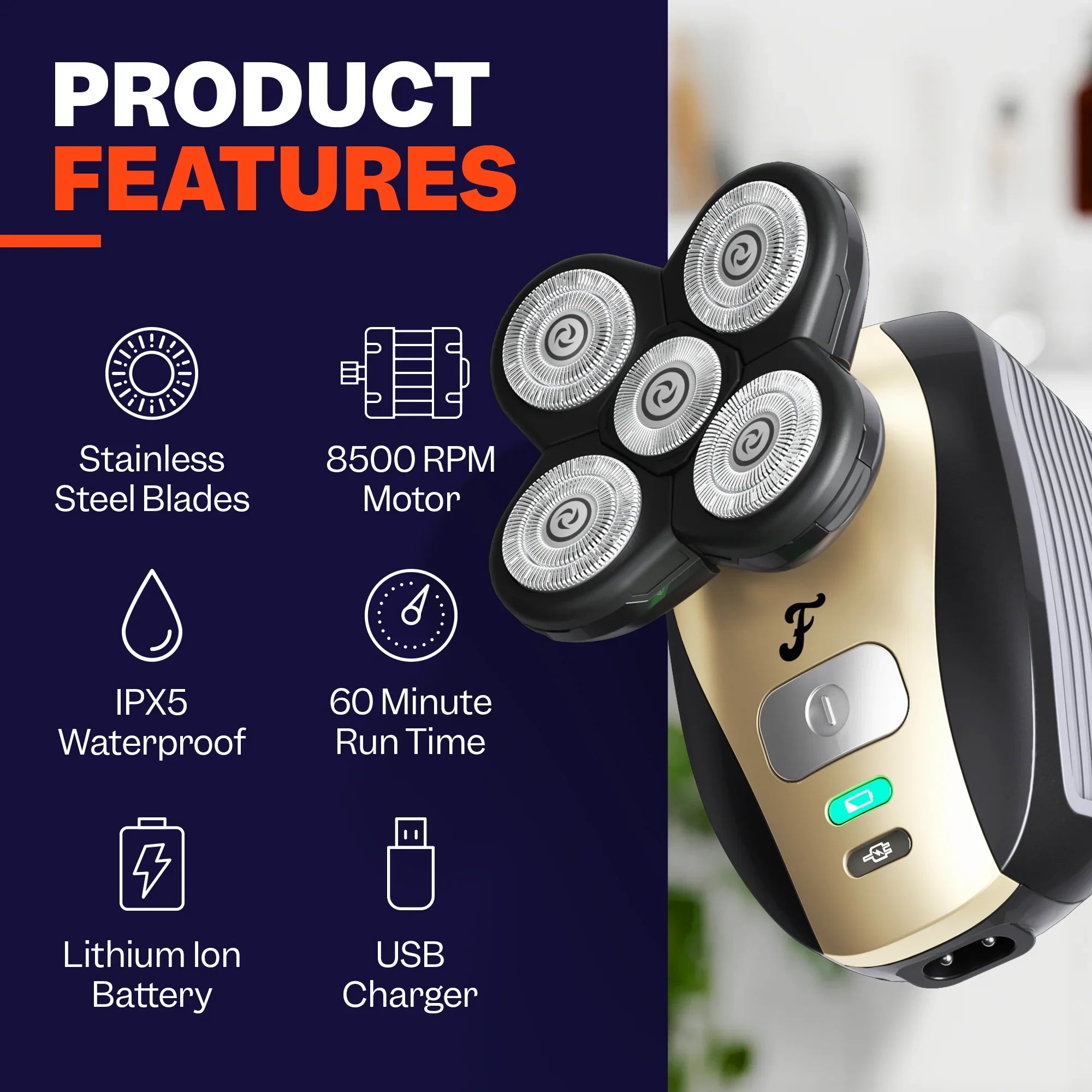 Our shaver is designed to provide a fast and efficient shaving experience. The shaver features multiple rotary blades that work together to quickly and effectively cut hair, allowing you to shave your head in as little as 90 seconds. The shaver is also designed with a powerful motor that ensures a smooth and consistent shaving experience, further reducing the time needed to shave your head.