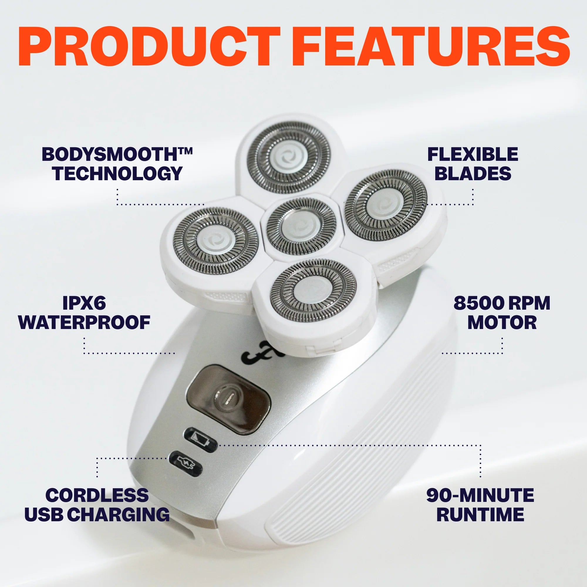 Achieve soft, touchable skin in under two minutes—no razor, no fuss. No more nicks, cuts, or razor burn—just gentle, irritation-free shaving. Get that razor-smooth finish with our BodySmooth™ Rotary Blades—without the hassle of traditional razors. Use it wet, dry, or in the shower. Wherever and whenever you want to feel confident, it’s ready. The lightweight, ergonomic design is easy to hold and helps you reach every curve with precision. Say goodbye to clogged razors and messy cleanup. This shaver keeps things neat and simple. Includes attachments to exfoliate, trim, and shave—everything you need for full-body grooming. Skip the pricey salon visits and disposable razors. Get premium performance at a fraction of the cost.